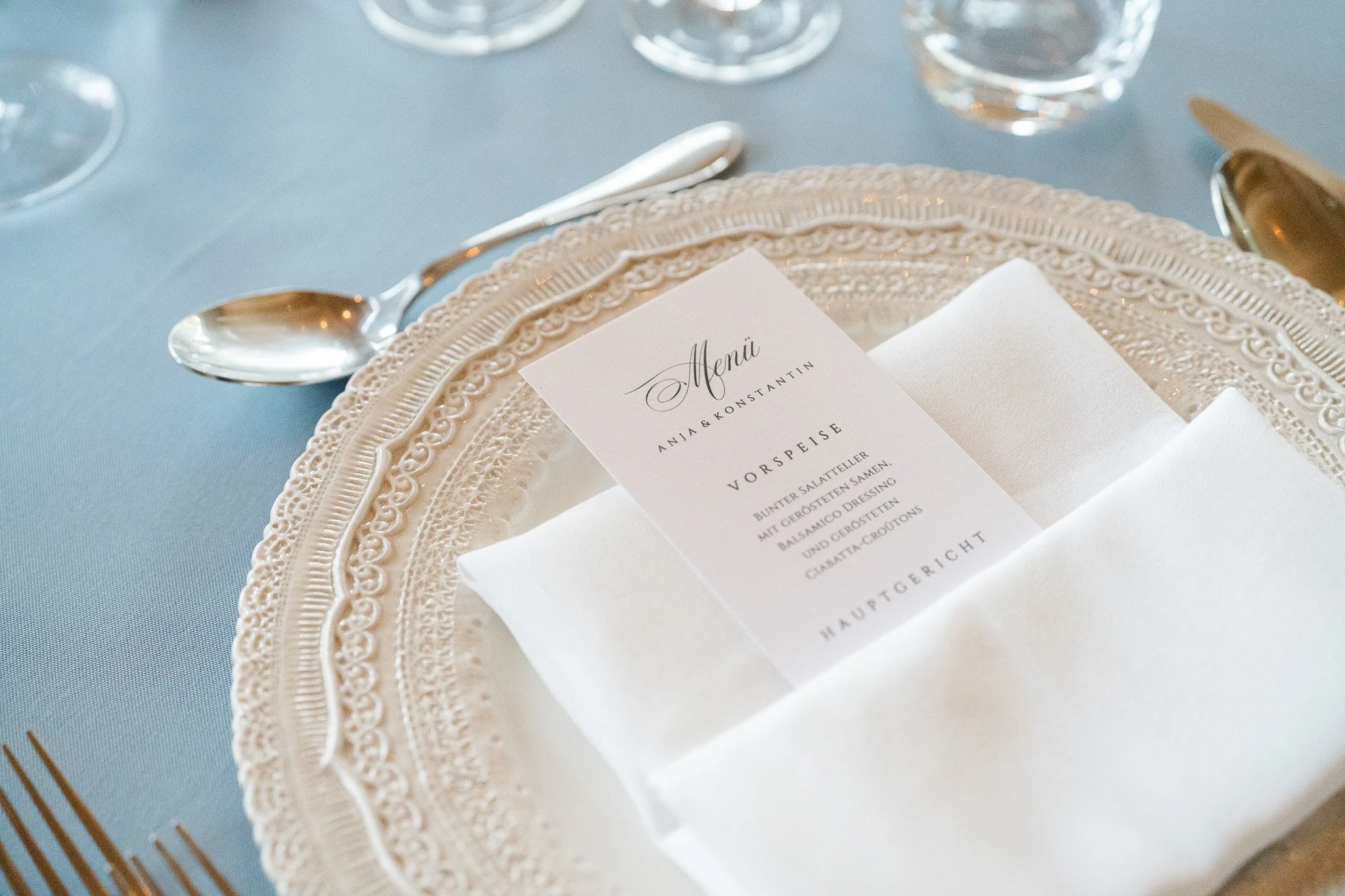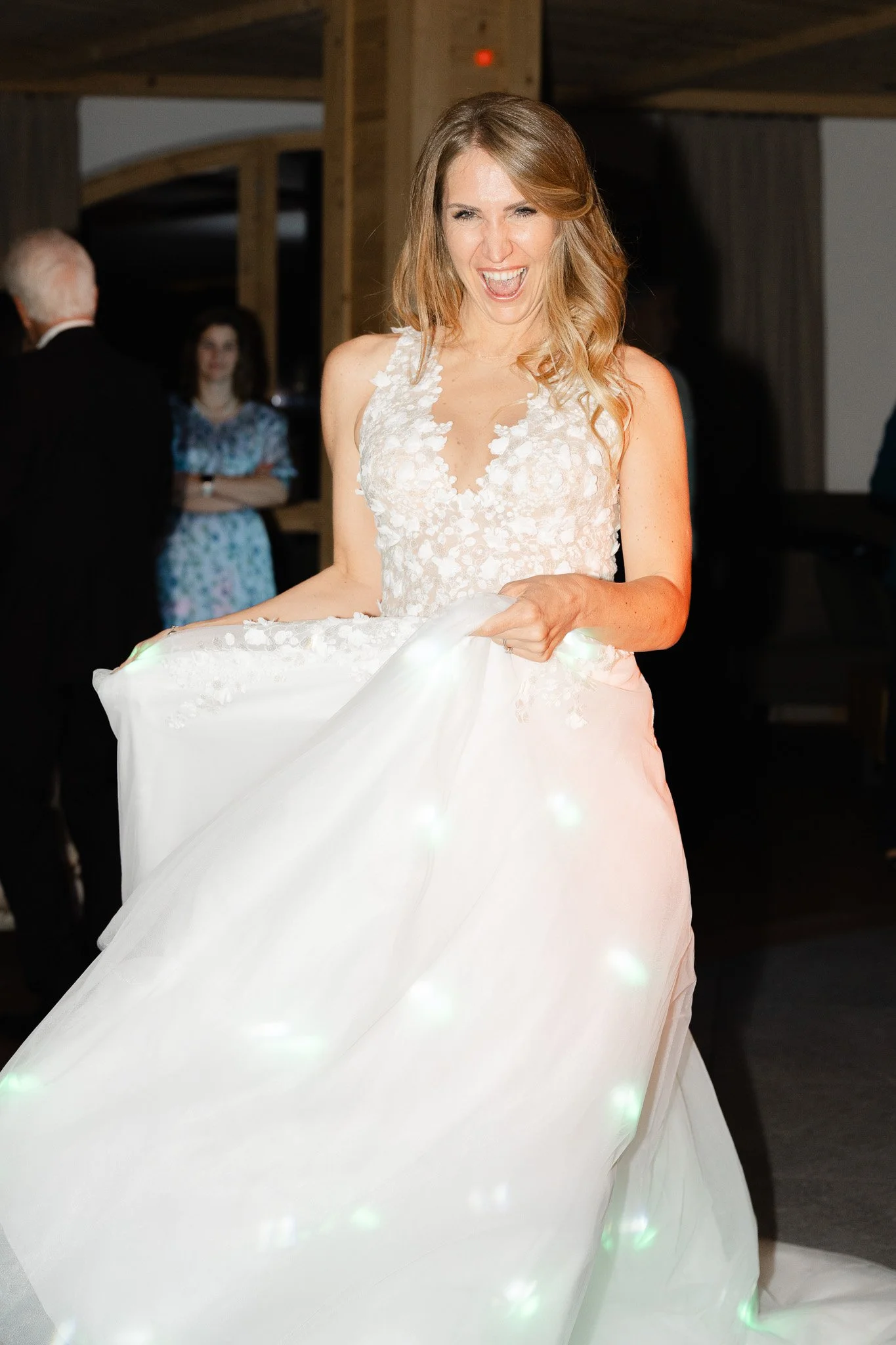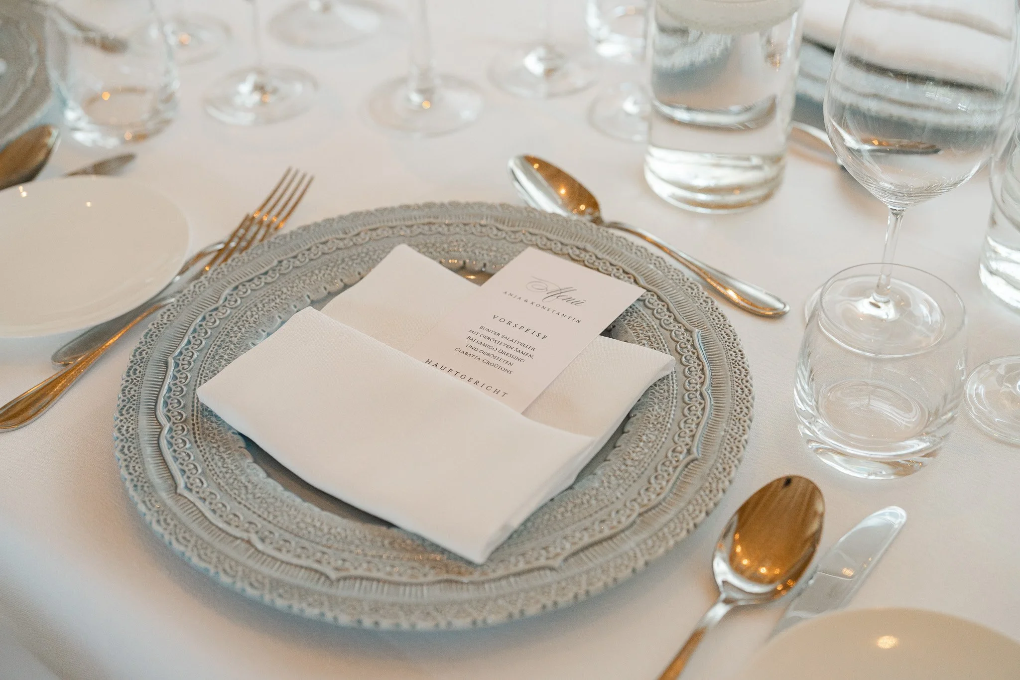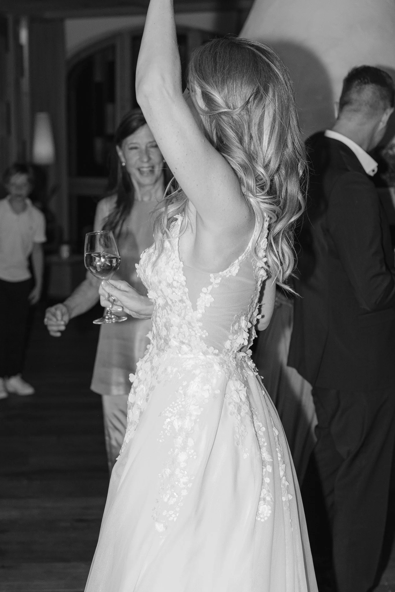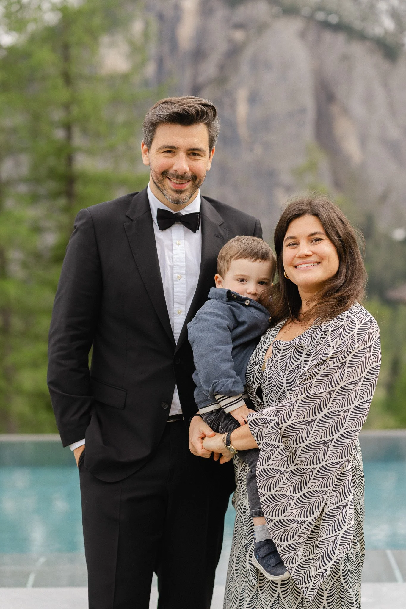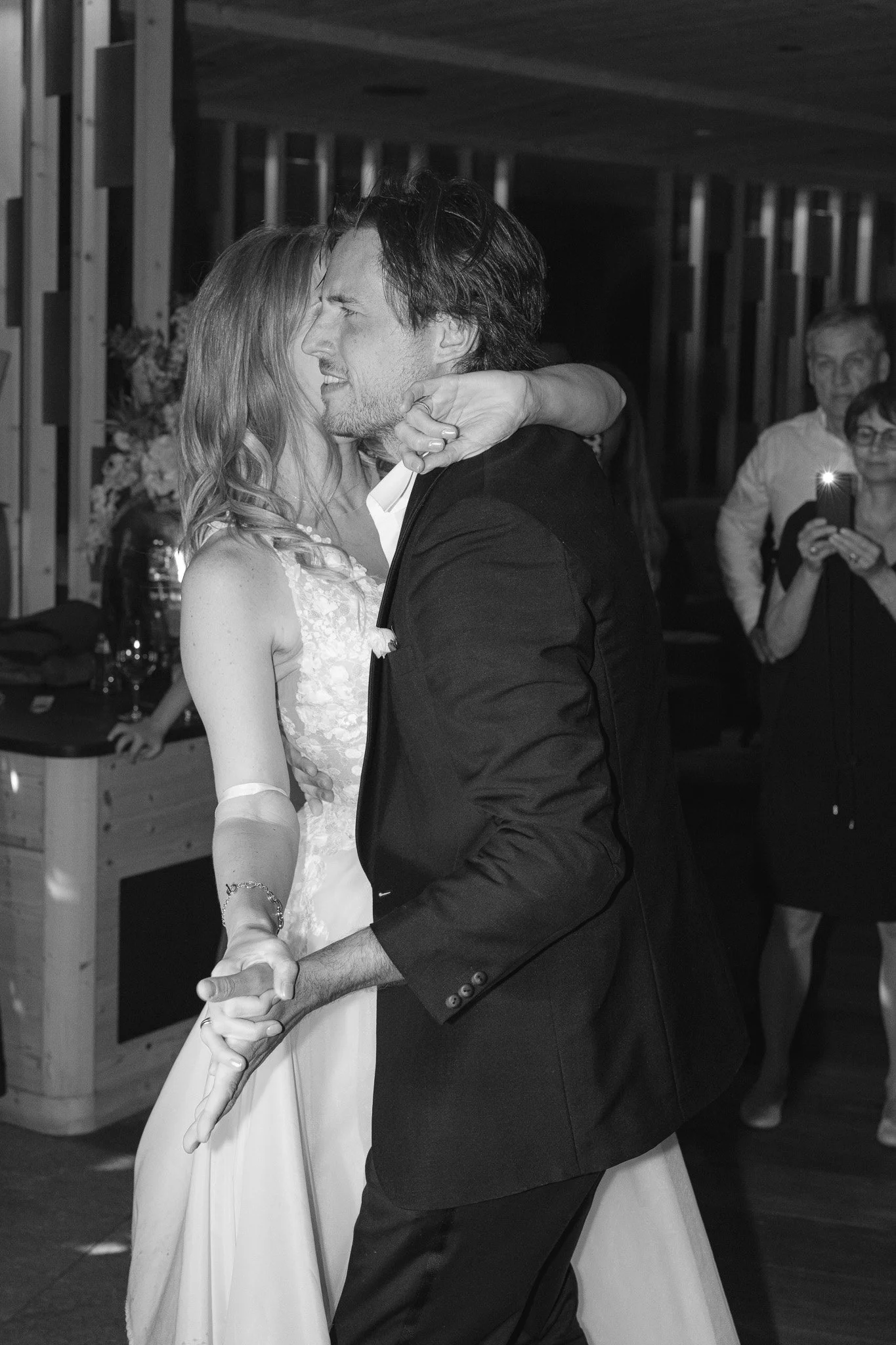 The venue perfectly blended elegance and modernity with stunning mountain views. Anja wore a classic and dreamy dress that perfectly complemented the serene mountain backdrop. After the getting ready session, followed by an intimate first look, the mountain view ceremony was a breathtaking highlight. The reception was nothing short of spectacular, featuring a towering wedding cake that was as delicious as it was beautiful. Besides the mountain scenery, a breathtaking modern table setting with thousands of candles and heartwarming songs performed by a live singer, guests were treated to a wood-fire pizza party, adding a warm and casual touch to the festivities. The after-party was unforgettable, with Anja and Konstantin's powerful first dance setting the tone for the celebration. Every detail was meticulously planned, creating a day full of love and joy. The evening ended with guests under the stars, reminiscing about the day's beautiful moments.