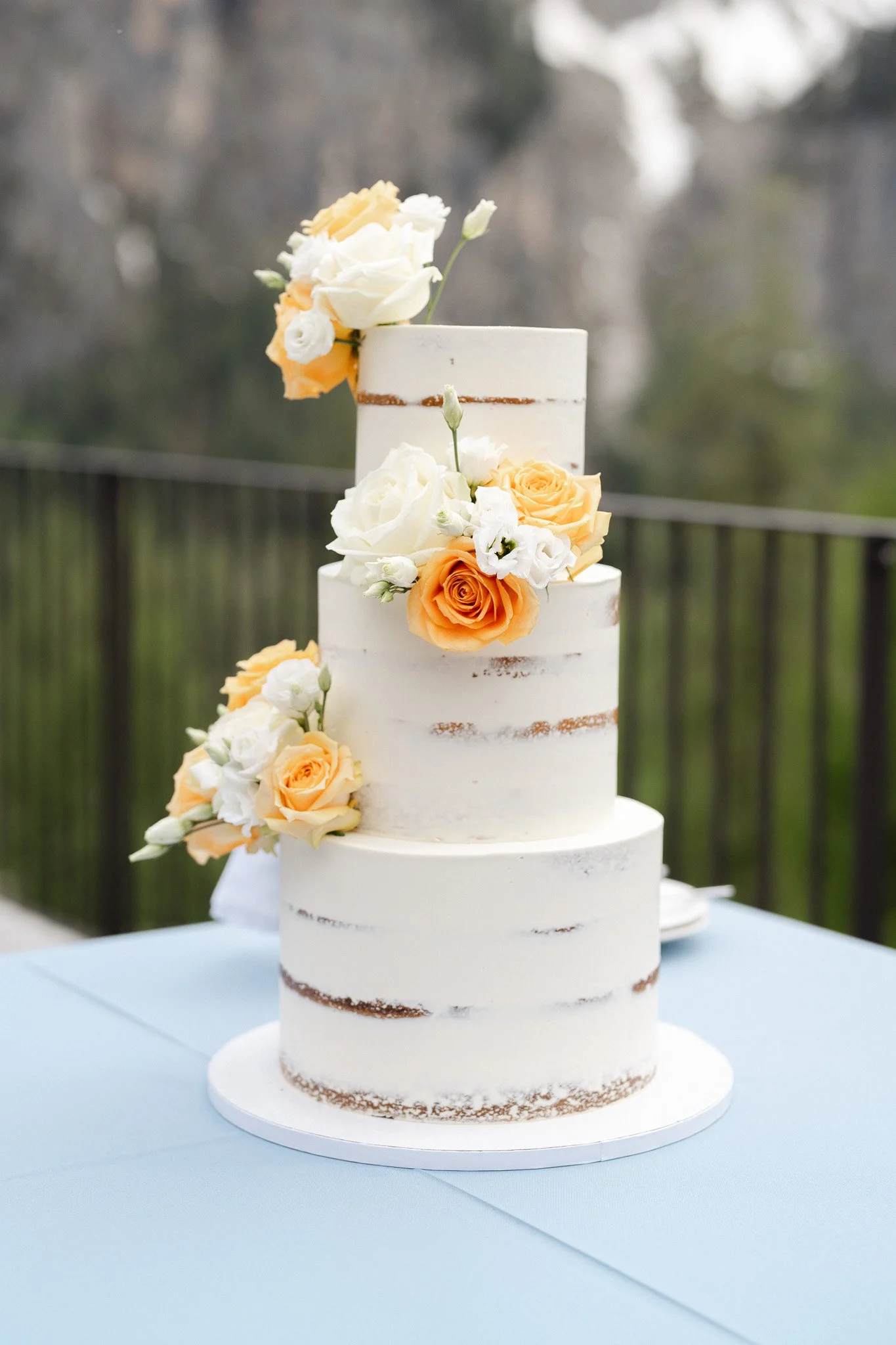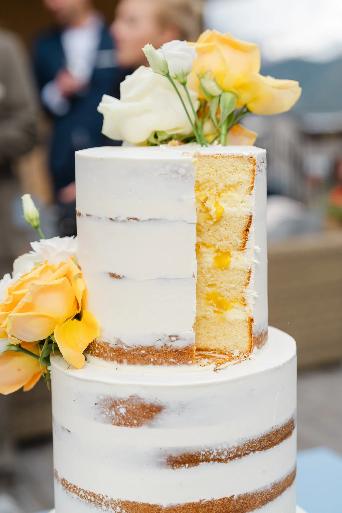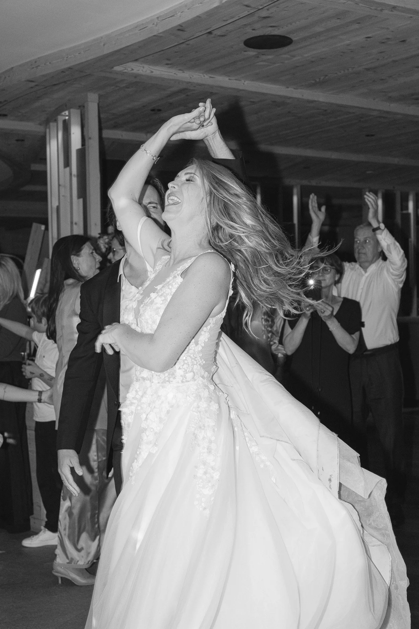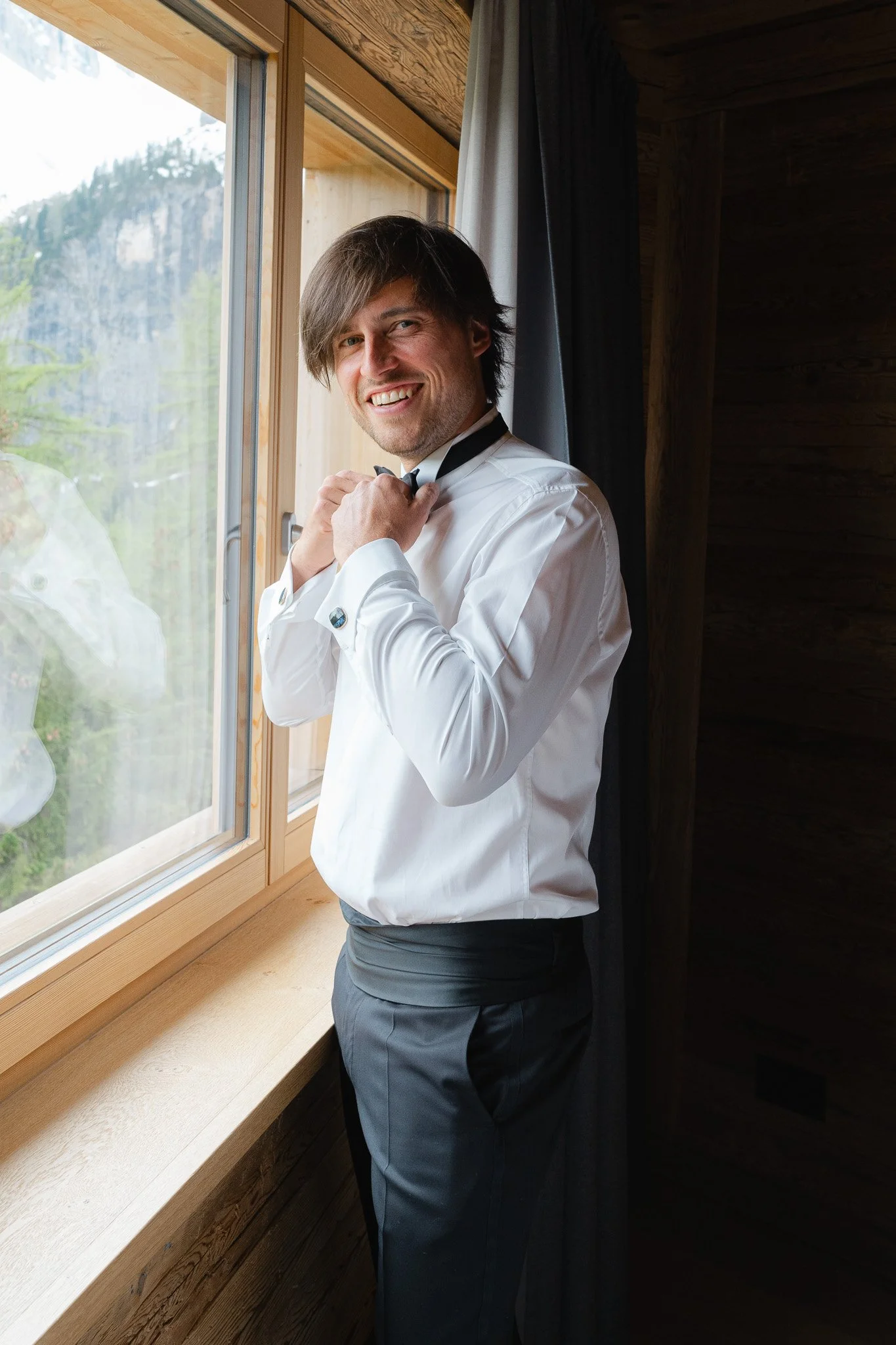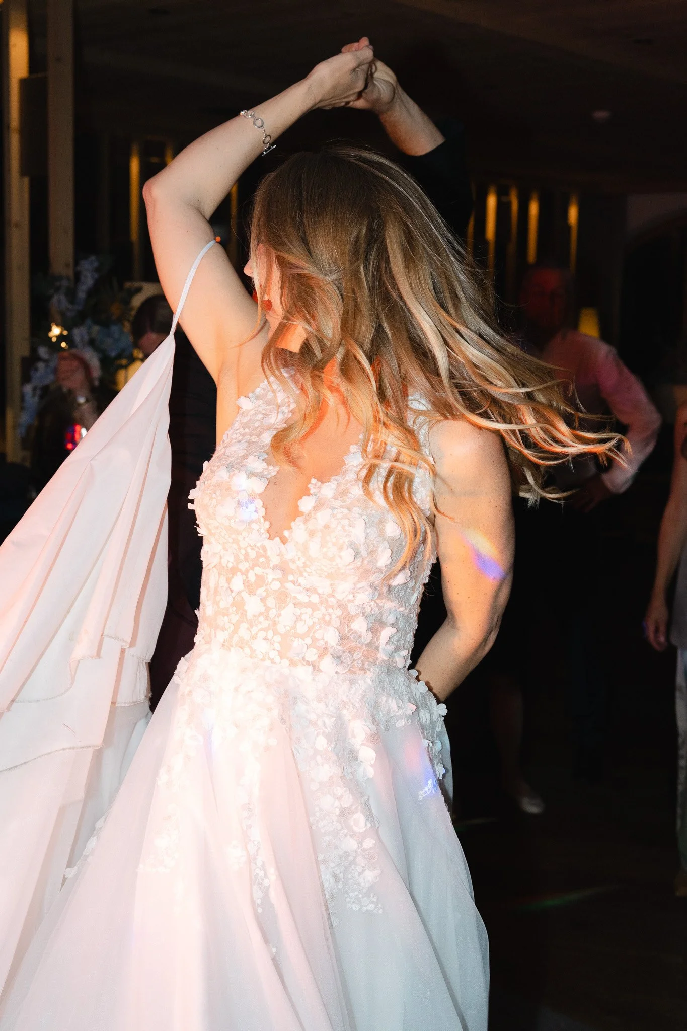The venue perfectly blended elegance and modernity with stunning mountain views. Anja wore a classic and dreamy dress that perfectly complemented the serene mountain backdrop. After the getting ready session, followed by an intimate first look, the mountain view ceremony was a breathtaking highlight. The reception was nothing short of spectacular, featuring a towering wedding cake that was as delicious as it was beautiful. Besides the mountain scenery, a breathtaking modern table setting with thousands of candles and heartwarming songs performed by a live singer, guests were treated to a wood-fire pizza party, adding a warm and casual touch to the festivities. The after-party was unforgettable, with Anja and Konstantin's powerful first dance setting the tone for the celebration. Every detail was meticulously planned, creating a day full of love and joy. The evening ended with guests under the stars, reminiscing about the day's beautiful moments.