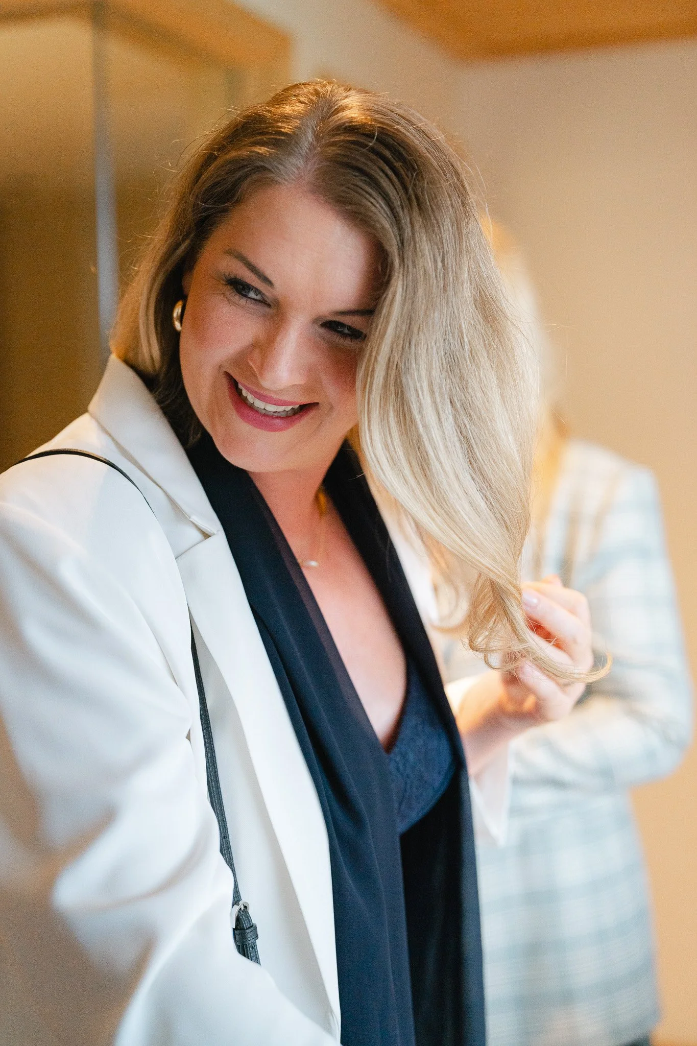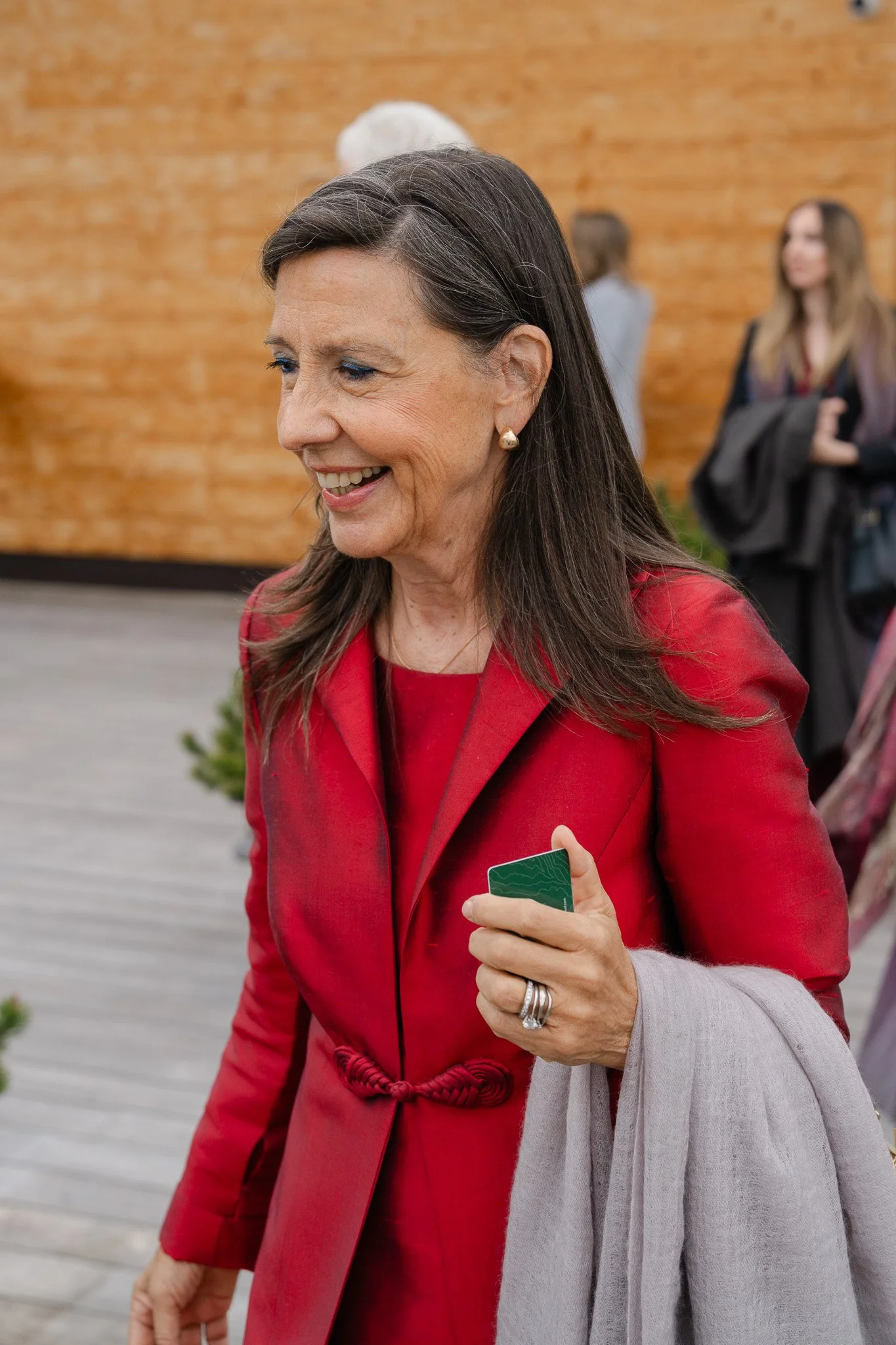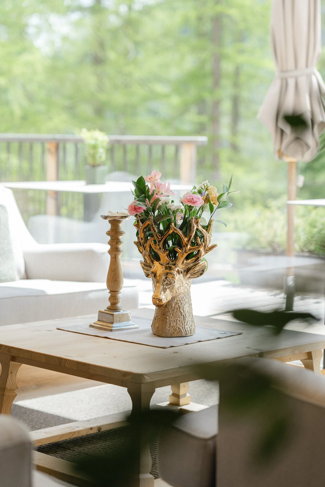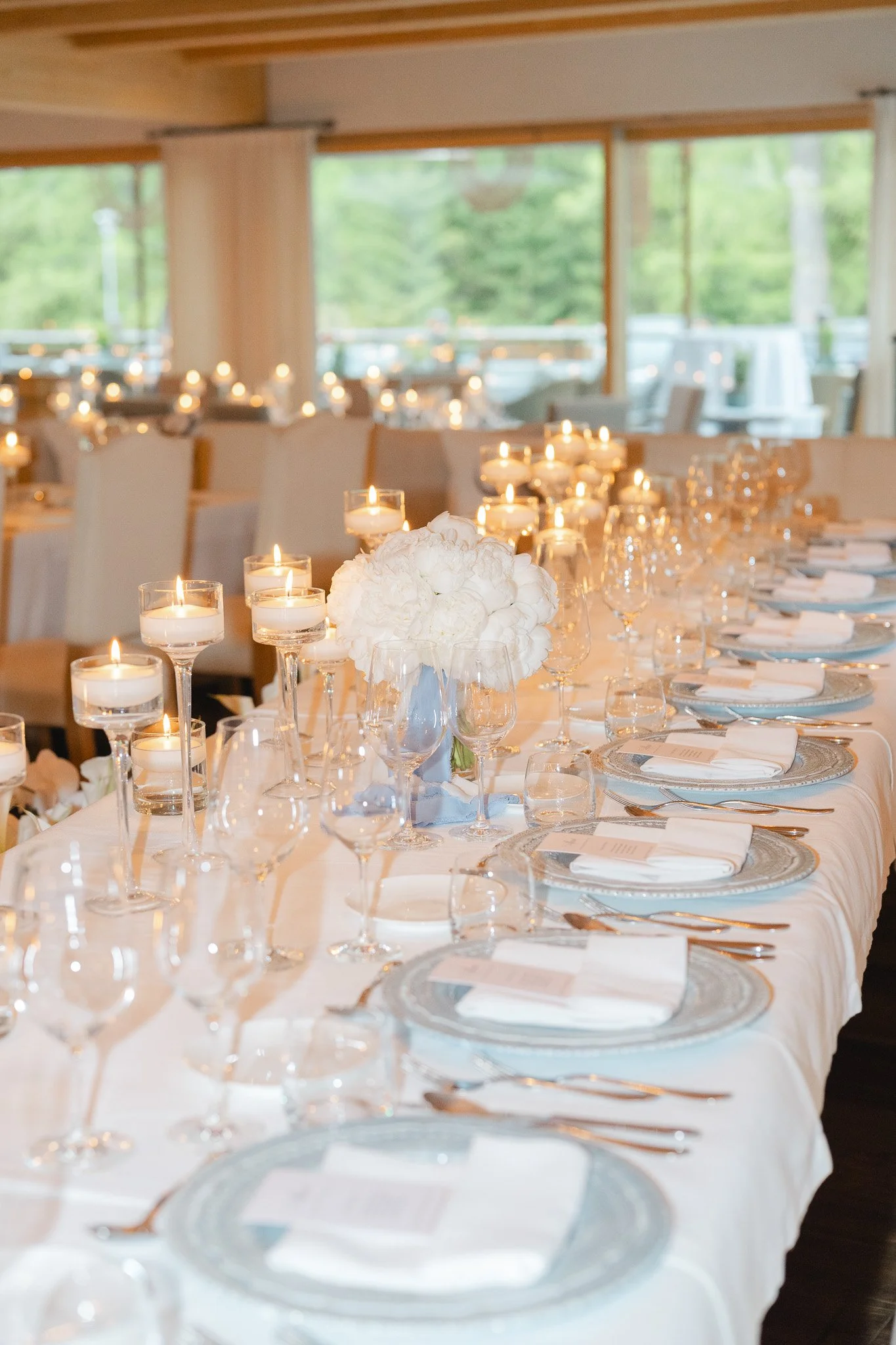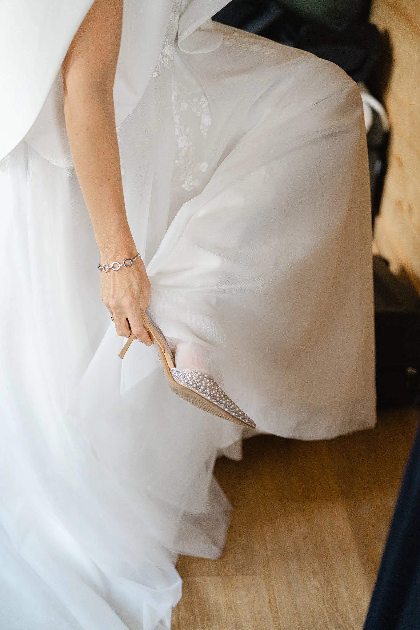 The venue perfectly blended elegance and modernity with stunning mountain views. Anja wore a classic and dreamy dress that perfectly complemented the serene mountain backdrop. After the getting ready session, followed by an intimate first look, the mountain view ceremony was a breathtaking highlight. The reception was nothing short of spectacular, featuring a towering wedding cake that was as delicious as it was beautiful. Besides the mountain scenery, a breathtaking modern table setting with thousands of candles and heartwarming songs performed by a live singer, guests were treated to a wood-fire pizza party, adding a warm and casual touch to the festivities. The after-party was unforgettable, with Anja and Konstantin's powerful first dance setting the tone for the celebration. Every detail was meticulously planned, creating a day full of love and joy. The evening ended with guests under the stars, reminiscing about the day's beautiful moments.